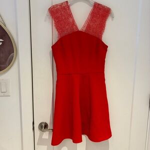 The Kooples Red Lace Trim Fit and Flare Dress Sz Small