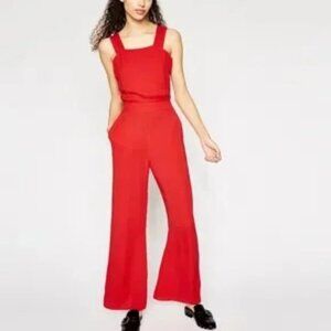 This stunning NWT The Kooples red tie back jumpsuit features a sleeveless design and a scoop neckline. This can be dressed down for a winery visit, dressed up with a blazer for a work event or dressed for a night out on the town. Extremely versatile