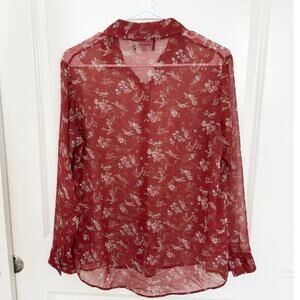 The Kooples Sheer Boho Floral Bird Button Down Blouse Red Medium