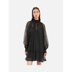 The Kooples Sheer High Neck Mini Dress in Black Polka Dot