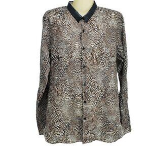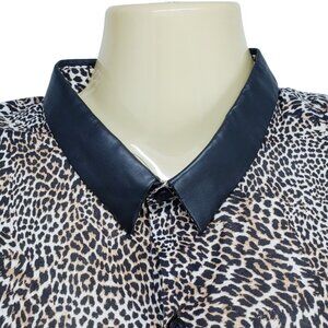 The Kooples Shirt Leopard Button Up Women's Size M Fitted Faux Leather Collar