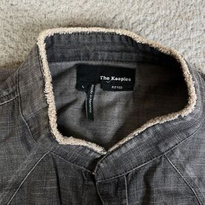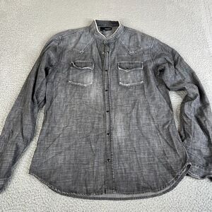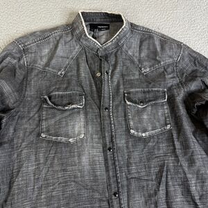 The Kooples Shirt Men Large Fitted Black Denim Pearl Snap Distressed Pocket