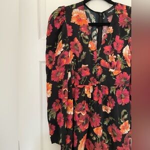 The Kooples Silk Black Pink Orange Floral Long Sleeve Button Formal Ruffle Dress
