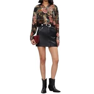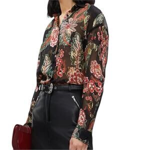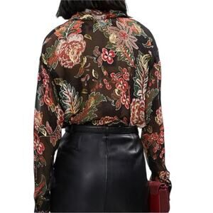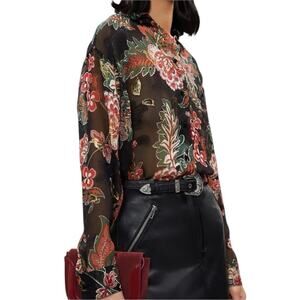 The Kooples Silk Bollywood Black Gold Metallic Floral Print Sheer Blouse small