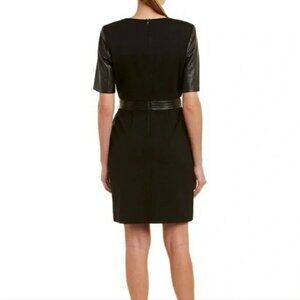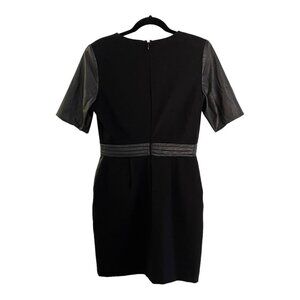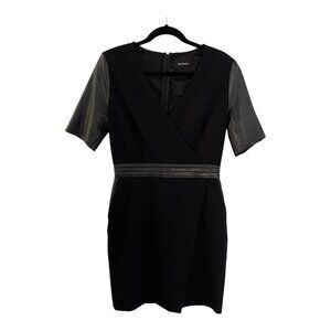 The Kooples Size 6 Hopla Leather Sleeves Faux Wrap Crossover Sheath Dress LBD