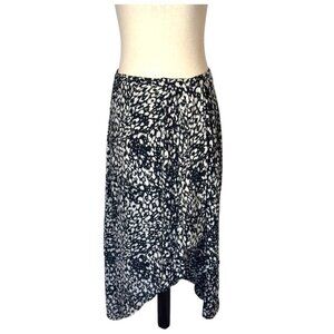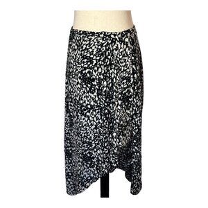 The Kooples Skirt Women Medium Black White Animal Flowing Long Asymmetric Midi