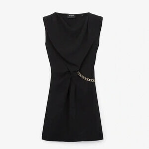 The Kooples Sleeveless Draped Black Dress with Epaulettes and Chain Detail Sz. 3