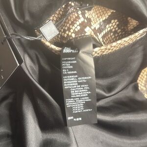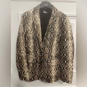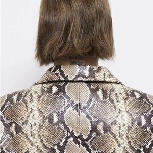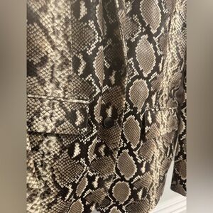 Stylish snake print blazer. Features a bold pattern. Perfect for a chic look. Made with 💯 calf skin leather.