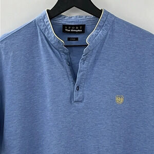 The Kooples Sport Classic Cotton Polo with Officer Collar Light Blue - Size XL. Great pre-owned condition. Top buttonhole is a little bit loose. Short sleeved with rib knit edges, officer collar with contrast piping, split hems with brand inserts, 100% pique cotton. Approximate measurements: 23" pit to pit, 27" length.