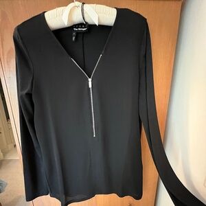 NWT. The Kooples Sport long sleeve, zip front shirt. Back and sleeves are a cotton/tencel, while the front is silk (see tag). This blouse fits well, drapes nicely, not oversized, not fitted.