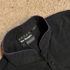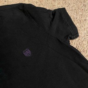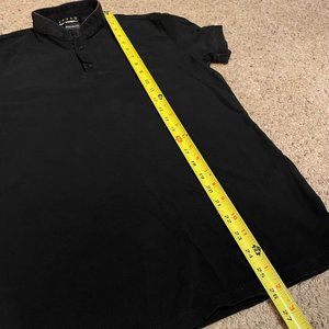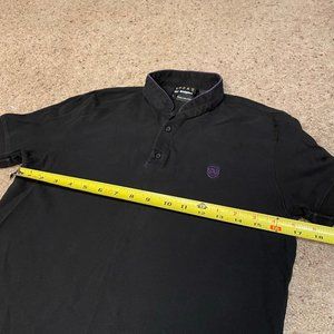 A men's The Kooples black sports polo, with a unique mandarin collar and The Kooples crest embroidered on the chest/hem releases. Men's small, and true to size.