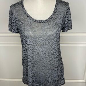 Beautiful sheer snakeskin pattern top. Black/gray. Sheer. 3/4 Zipper back. 50% poly 50% viscose.
