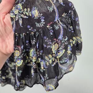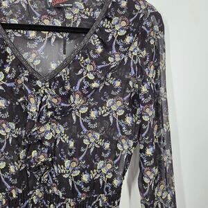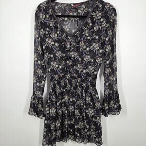 The Kooples Sunrise 1 XS Silk Floral Mini Dress Smocked Long Sleeve Sheer Bead