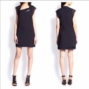 The Kooples The Mesh Cap Sleeve Shift Dress Navy Blue