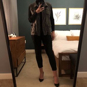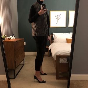 The vest originally had a concealed drawstring but that is missing. The vest cannot be cinched in at the waist. Other than that - great condition.