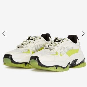 These white platform sneakers will give your urban outfits that bold finishing touch. In keeping with this season's athleisure vibe, these are technical in style with their lace fastening and black and fluorescent yellow inserts. They have a thick notched sole with a slightly rounded shape that provides extra character for when you're on the go. You can team these urban sneakers with striped suit pants, a printed T-shirt and a formal jacket.