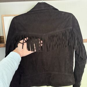 The Kooples Women S Fringed Jacket Goat Leather Soft Suede Biker Black Jacket