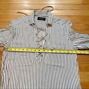 The Kooples Womens Blouse Popover Shirt Top sz 2 /M White Blue Striped Lace Up