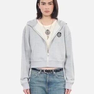 The Kooples cropped zip up hoodie with crest patch. Easy oversized fit. Excellent condition. New with tags. Great gift item.