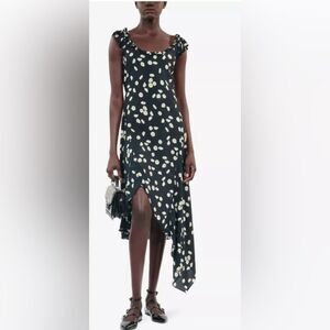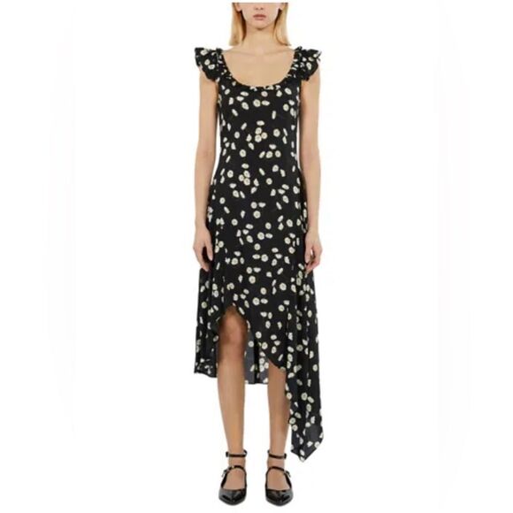 The Kooples black, white and yellow Daisies Satin slip dress y2K inspired
