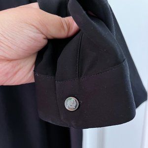 Black shirt/blouse from The Kooples. Semi-sheer material throughout, with great details like broderie panels on the front and a leather collar.