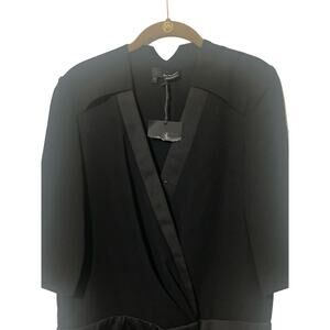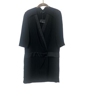 The Kooples sz S NWT Black Crepe and Satin Trim Tuxedo Jacket Wrap Mini Dress