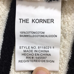 The Korner Cream Black Striped Knit Cardigan Womens One Size Tunic Sweater . Open front. 100% Cotton. Pre-owned Condition- no flaws, no rips, stains, or holes.