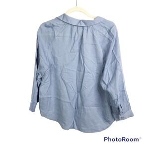 The Korner basic blue long sleeve v neck collared blouse size S NWT