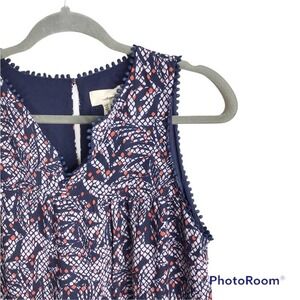 Brand new The Korner drop waist sleeveless floral leaf print midi dress. Geometric snakeskin style overlay on a floral leaf print. Eyelet trim detail along the neckline and sleeves. Striped eyelet band give and drop waist effect.