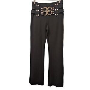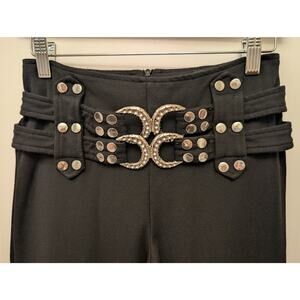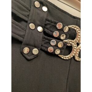 The Kript Knox Pants Black Stretch Ponte Silver Hardware Belt Flare Leg Goth Y2K