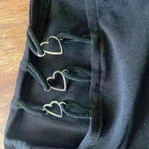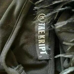The Kript has done it again with these spicy little black feather bottom leggings. They also have cut out sides with silver heart embellishments. Absolutely sexy and not to be missed at this price. Size small
