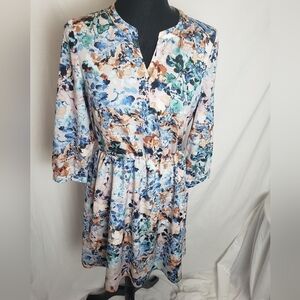 The LIMITED Multicolored 3/4th Length Sleeve Sinched Waist Dress Sz S