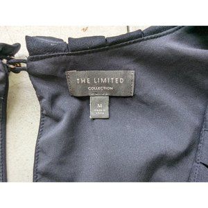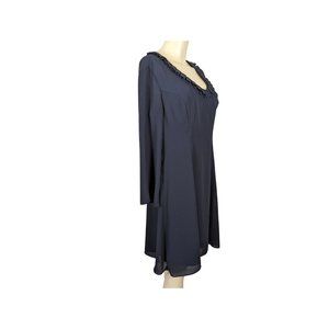 The LImited Collection long sleeve pleated collar navy blue open back dress M