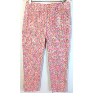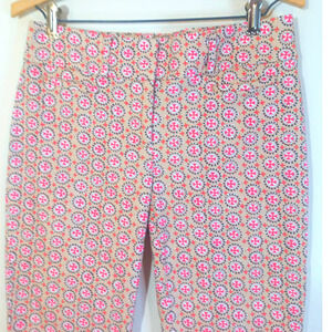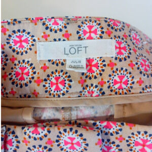 The LOFT Women Sz 0 Julie The Rivera Pant Crop Tan Coral Pink Mandala Boho Work