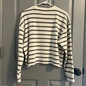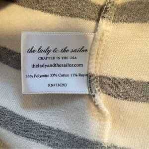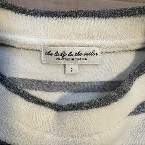 Stylish striped sweater by The Lady & The Sailor. Features charcoal gray and shite stripes. Very cute sweater, in great condition!