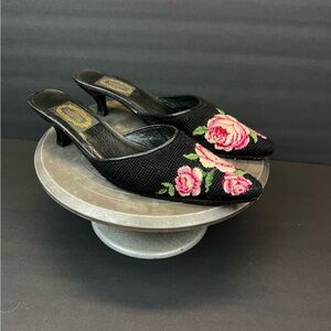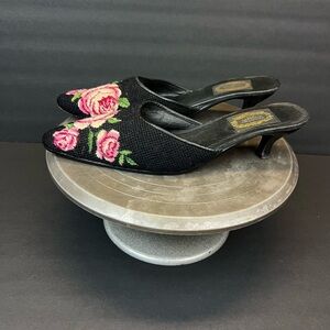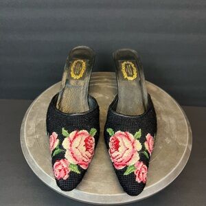 The Larkspur Collection Shoes Size L Needlepoint Mule Heel Pink Black Floral