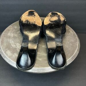 Step into elegance with these black mules adorned with beautiful floral embroidery. Perfect for adding a touch of sophistication to any outfit.