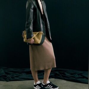 The Leather Carabiner Crossbody Sling Bag in Gilded Moss, NWT, Leather, Made of supple leather, this '90s-inspired two-in-one crossbody bag holds your daily phone-keys-wallet lineup. Complete with interior slide pockets, it has an adjustable leather and webbed strap that's completely removable thanks to the custom carabiner hardware.
