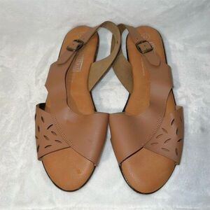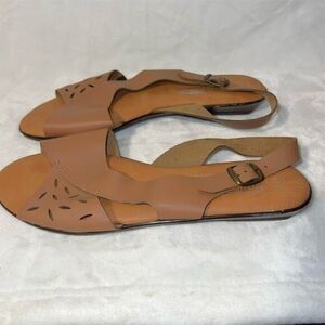 The Leather Collection Women's Brown Leather Slingback Sandals Size 8.5