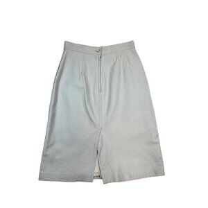 The Leather Factory Skirt Womens 7/8 White Leather Lined Midi Made in USA