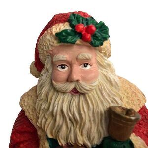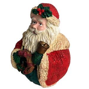 * Russ Sculpt stone The Legend Of Saint Nicholas Santa Claus Holding Bell & Wreath.