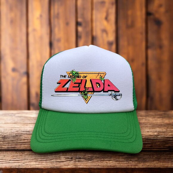 The Legend Of Zelda Mens Trucker Hat Green Snapback Retro 80s Video Game Cap