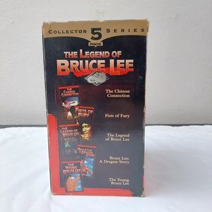 The Legend of Bruce Lee Collectors Series 5 Tape Box Set VHS. Boxset released in 1997 under Goodtimes. Outside box and VHS covers in very good condition, #4 in the set is still sealed.