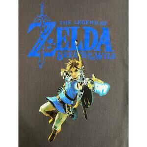 • Description: Celebrate the legendary adventure with this The Legend of Zelda: Breath of the Wild graphic t-shirt! Featuring Link in dynamic action with a striking blue and gold design, this officially licensed Nintendo shirt is a must-have for fans of the series. The dark gray shirt is 100% cotton for ultimate comfort and durability.