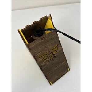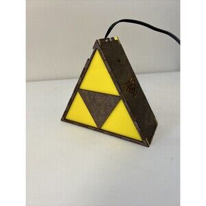 Illuminate your room with this stunning Legend of Zelda Triforce Light Lamp featuring the iconic symbol of Hyrule Crest. This lamp is perfect for any fan of the video game series and makes a great addition to your gaming merchandise collection. The lamp is in working condition and is sure to brighten up any room. There appears to be one piece missing where the cord comes thru the top, shown in photos.