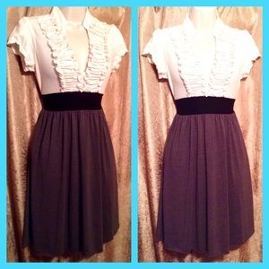 Size small, white ruffled top, gray skirt and a black sash hat ties around the waist. Lightweight and comfortable, yet oh so sexy! Fits size 0-4 best.