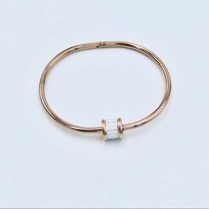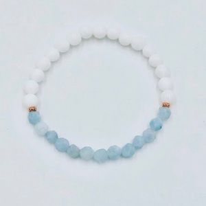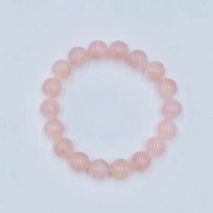 The set comes with the four bracelets shown - 10mm Madagascar rose quartz bracelet, 6mm Tridacna and Aquamarine with rose gold accents, 8mm Tridacna with rose gold lava stones and the rose gold band with Australian crystal closure. The rose gold band fits a standard size wrist snuggly and will not fit larger wrists.