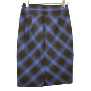 The Limited 0 Blue Black Plaid Pencil Skirt Back Slit Pleated waist Office