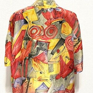 The Limited 100% SILK Vintage 90's Woman Abstract Art Button down Shirt Size S