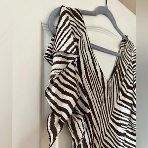 EUC Excellent condition! 100 % Silk brown and white animal print blouse. Measurements in photos. Open sleeves, flowy. Beautiful! Rich colors. Women’s size small. Smoke free home
